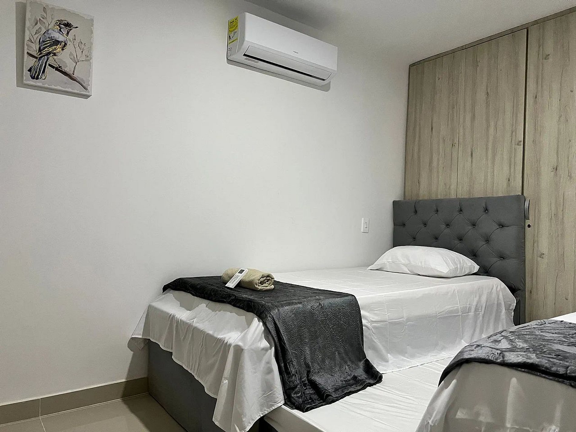 Cuenta con 2 habitaciones (principal con cama doble y segunda con 2 camas sencillas + cama nido), 2 baños (uno privado y uno de servicio), sala con Smart TV, WiFi de alta velocidad, aire acondicionado, cocina equipada, comedor y parqueadero exclusivo.