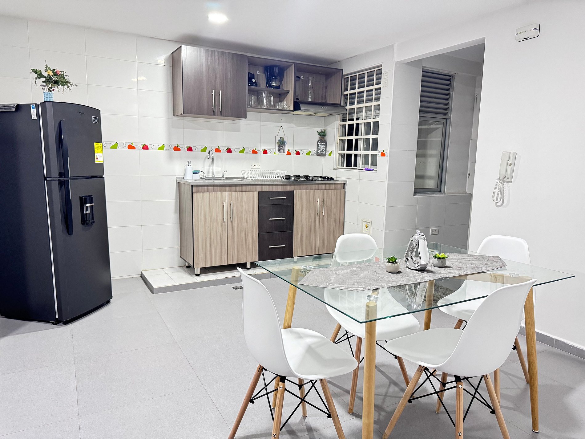 Apartamento moderno e totalmente equipado na zona norte de Valledupar, atrás da Universidade Andina. Possui 2 quartos, 2 banheiros, sala com Smart TV, WiFi de alta velocidade, ar-condicionado, cozinha equipada, sala de jantar e estacionamento exclusivo. Localização estratégica, ideal para estadias tranquilas, familiares ou acadêmicas.